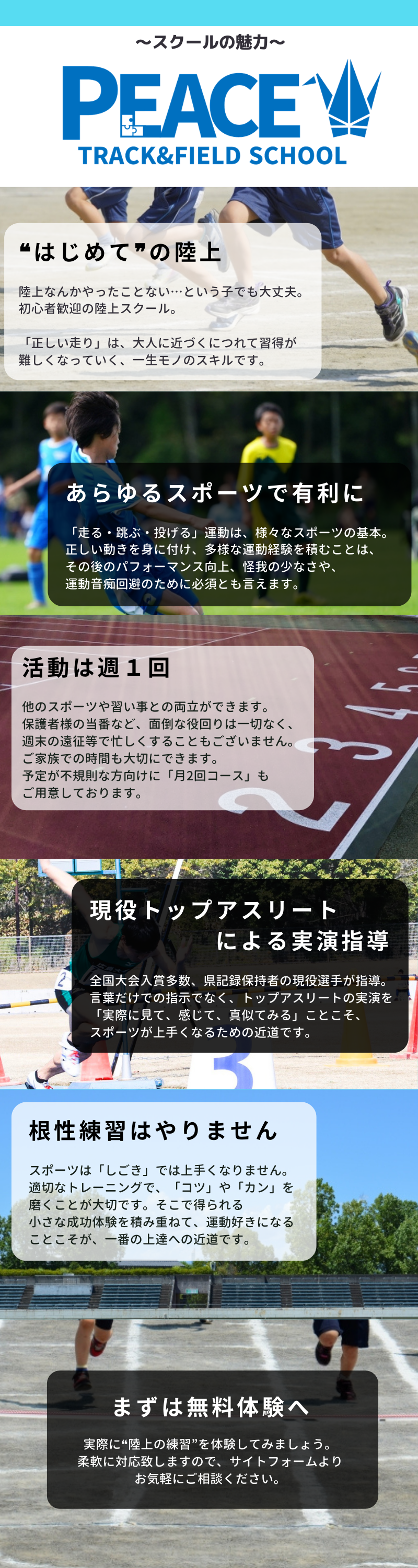 →キッズ+ユース+ジュニア「13:10〜14:10(アスリート〜15:00)」、中学高校「15:00〜17:00」