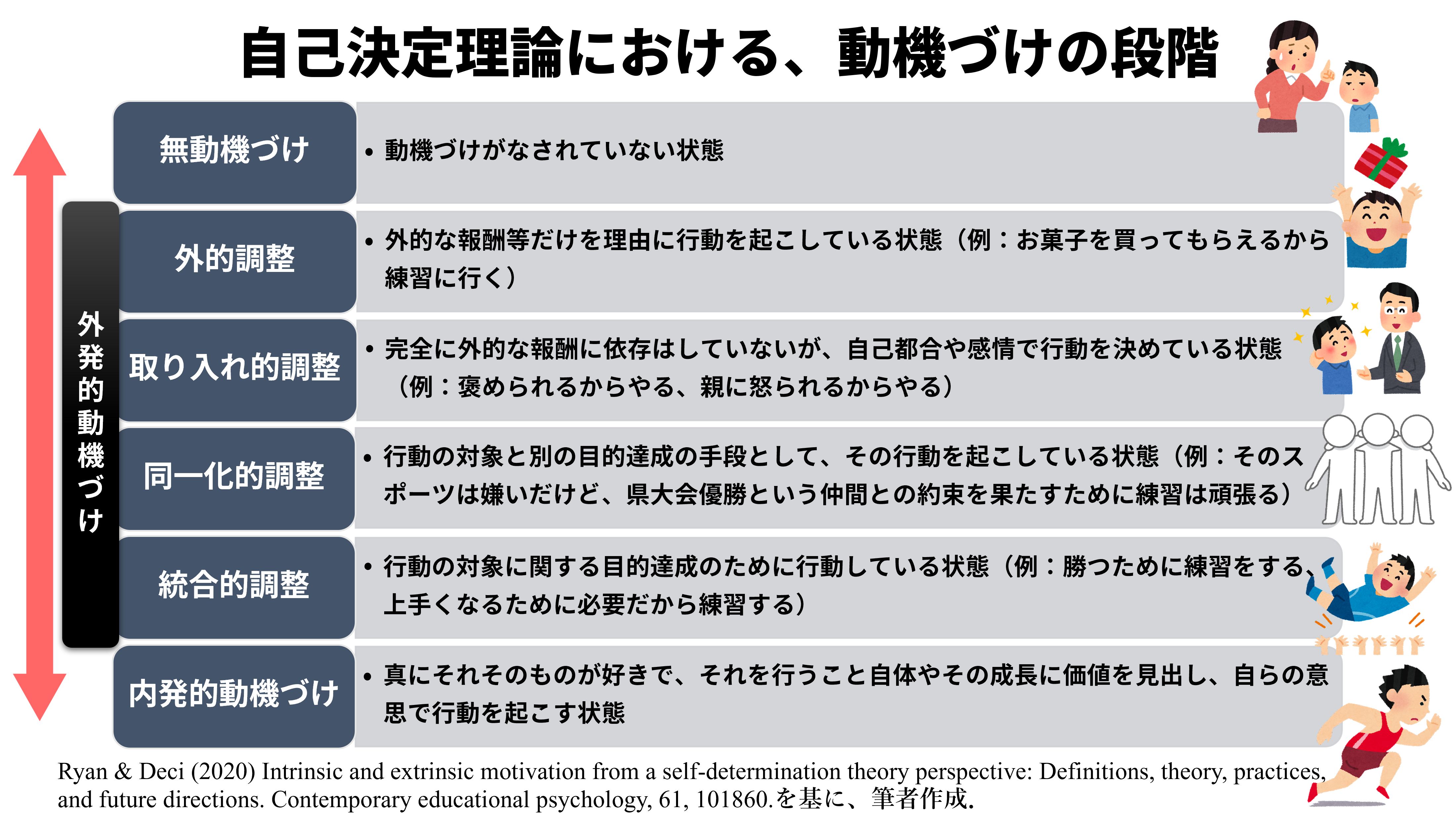 ・Ryan, R. M., & Deci, E. L. (2020). Intrinsic and extrinsic motivation from a self-determination theory perspective: Definitions, theory, practices, and future directions. Contemporary Educational Psychology, 61, 101860.