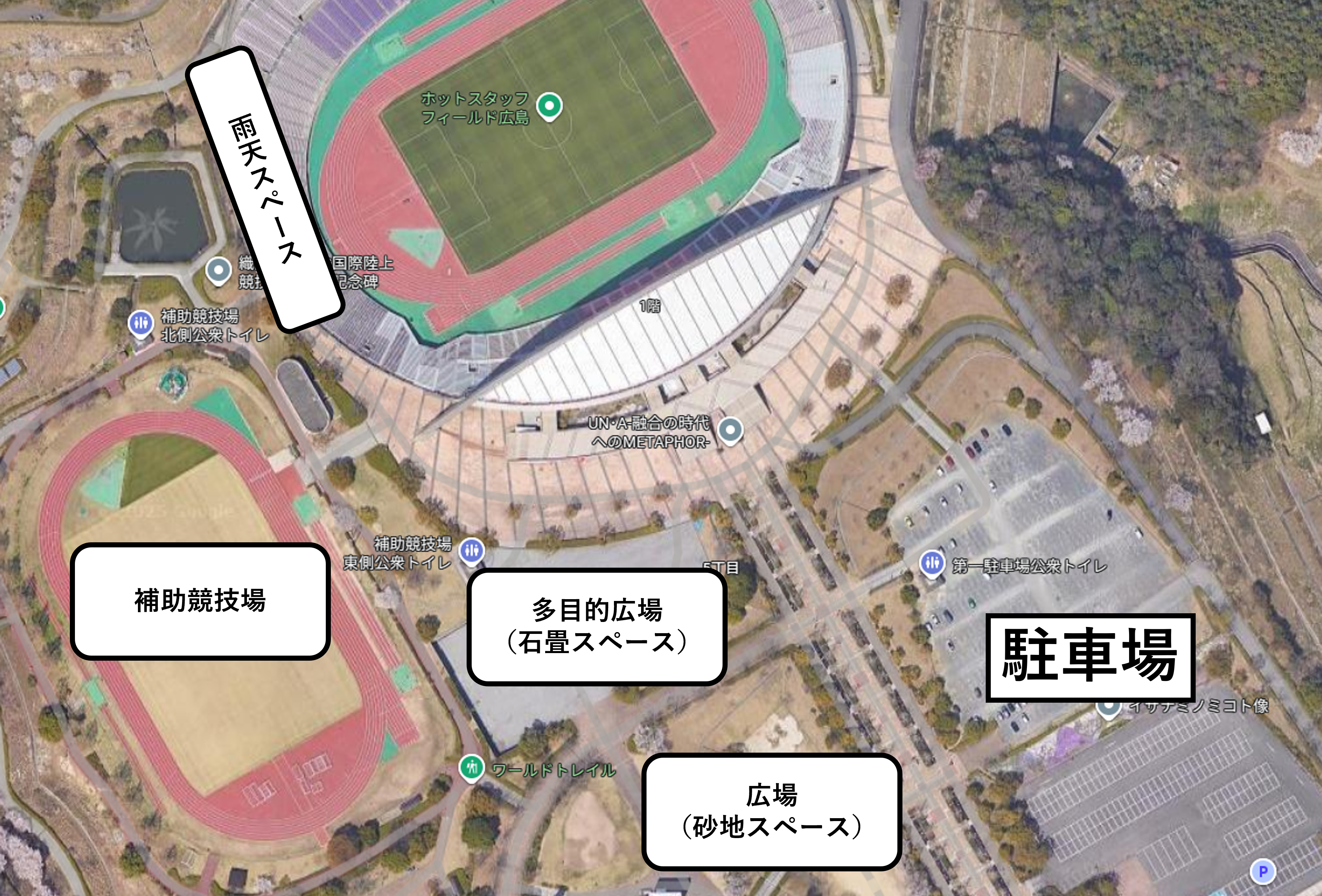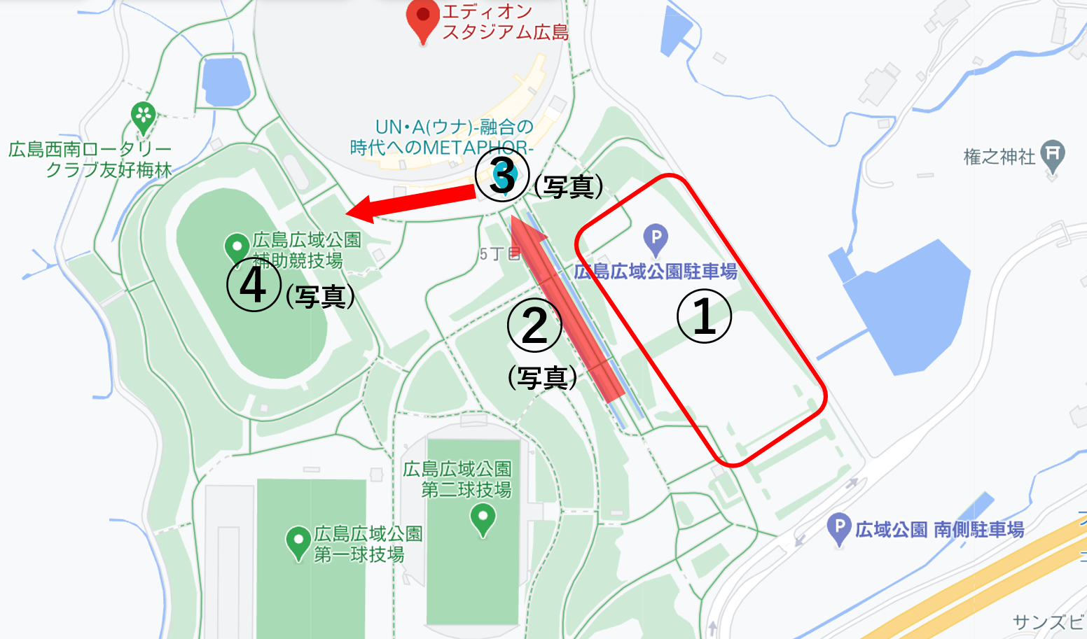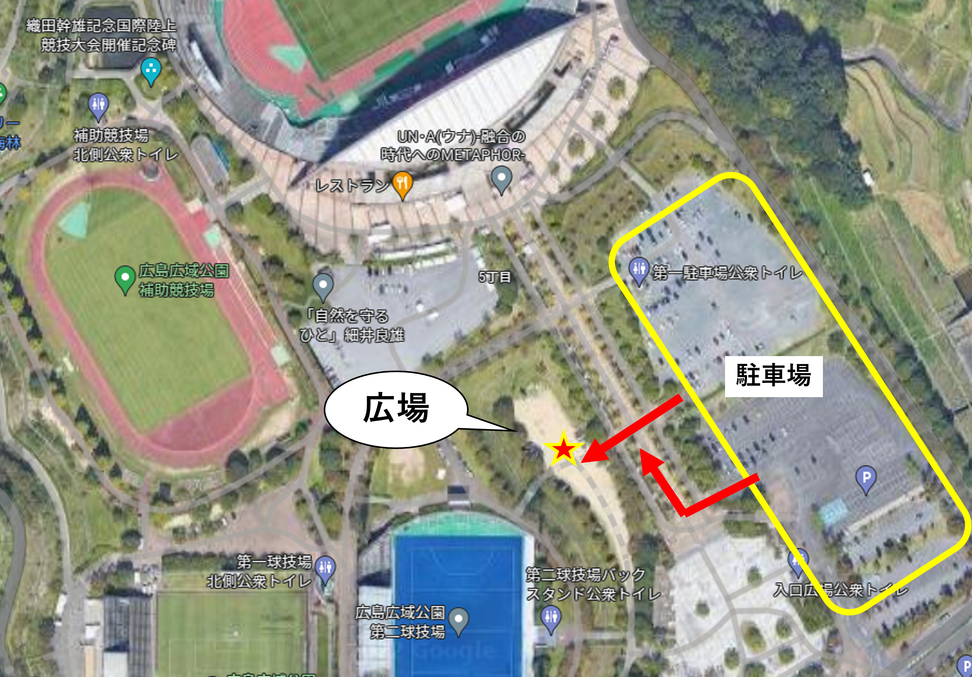 広島広域公園ホットスタッフフィールド広島:補助競技場、広場、雨天スペースへの行き方